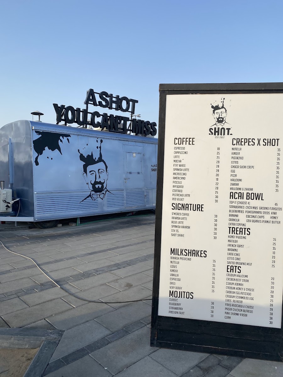 Welcome to Shot Specialty Cafe in Khalifa City, a gem located at the Food Truck Park near Al Raha International School. This café is a delightful stop for coffee aficionados and casual diners alike.